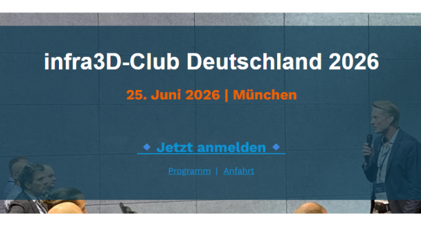 Startseite › Unternehmen › Newsfeed › Events Events 15.01.2026 Die infra3D Academy ist da! 08.01.2026 GEOSummit 2026: Besuchen Sie uns am 6. Mai 2026 in Olten 19.12.2025 3D-Forum Lindau: Besuchen Sie uns am 19. & 20. Mai 2026 in Lindau 17.12.2025 OVG.Summit 2026 in Wien: Besuchen Sie uns am 27. & 28. Mai 2026 02.03.2026 Erster infra3D-Club in Deutschland am 25. Juni 2026 15.12.2025 INTERGEO 2026 in München: Wir sind dabei | Halle 6, Stand: F103 15.09.2025 Das waren die Highlights am infra3D-Club 2025 10.09.2025 Smart City Expo World Congress: iNovitas auf dem bayerischen Gemeinschaftsstand in Barcelona (4. bis 6. November 2025) 29.08.2025 Kommunale 2025: Wir sind dabei | 22.-23. Oktober in Nürnberg | Halle 9, Stand 9-531 28.08.2025 INTERGEO 2025: Wir sind dabei | Halle 12.1, Stand: 1D019 08.08.2025 infra3D-Club 2025: 11. September in Brugg-Windisch 05.05.2025 Dreiländertagung 2025 | 3. - 5. Juni 2025 in Basel: Wir sind dabei Seiten1 2 3 4 Neugierig? Jetzt registrieren und die Testversion starten. Hier infra3D kostenlos testen